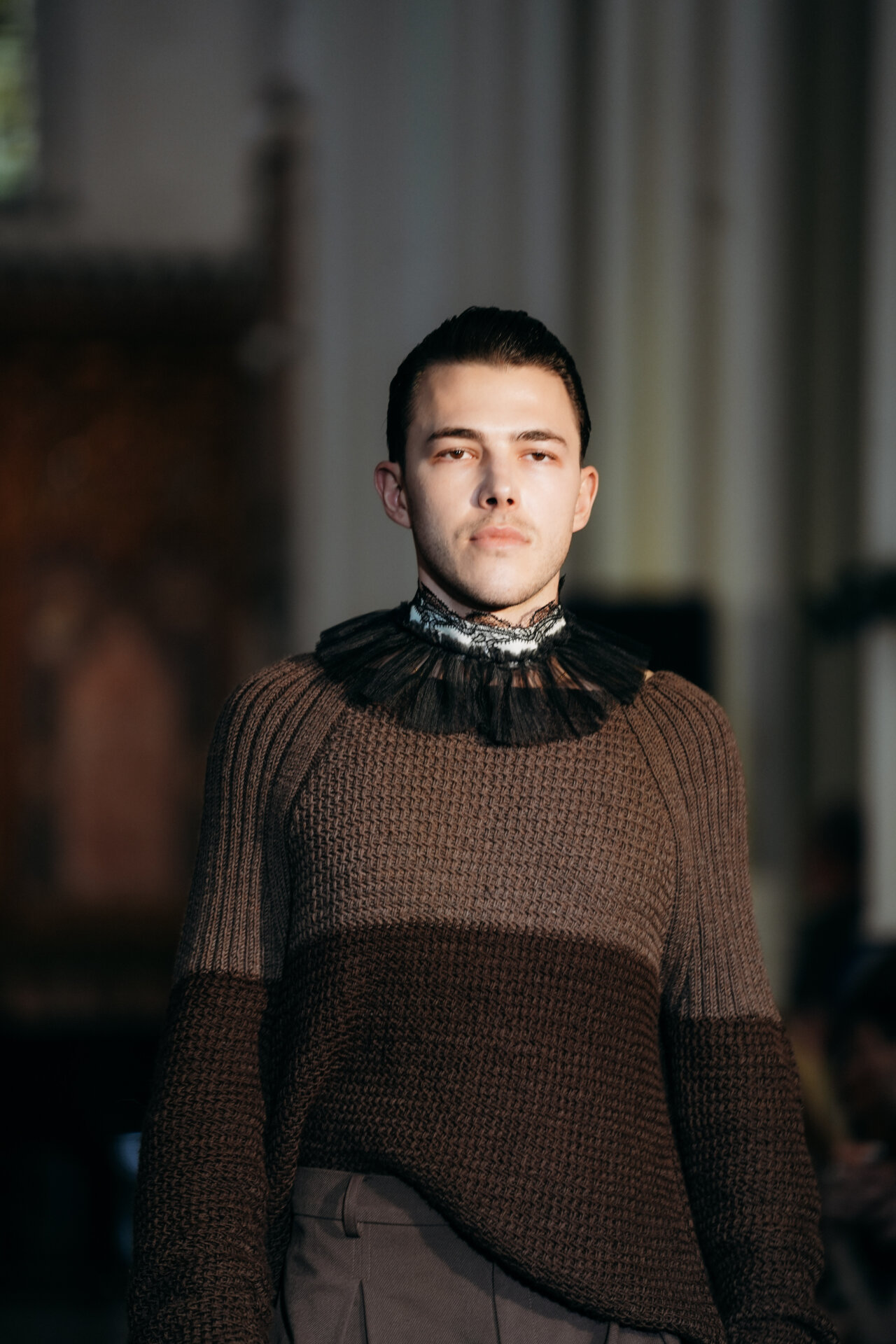 A striking complement to the looks was the addition of removable collars, crafted in the Tudor style exclusively for KEKA by the Ukrainian brand Mason Sophy G., lending the collection even greater historical resonance and individuality.